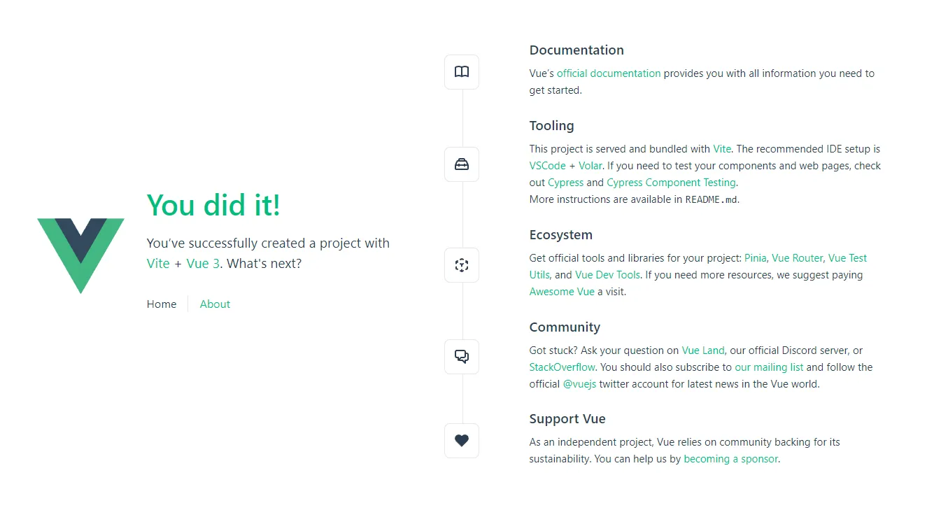 If you want to create another project later, run npm create vue@3, and you’ll see the same options for your next app. Check the full documentation on Vue’s official site.
